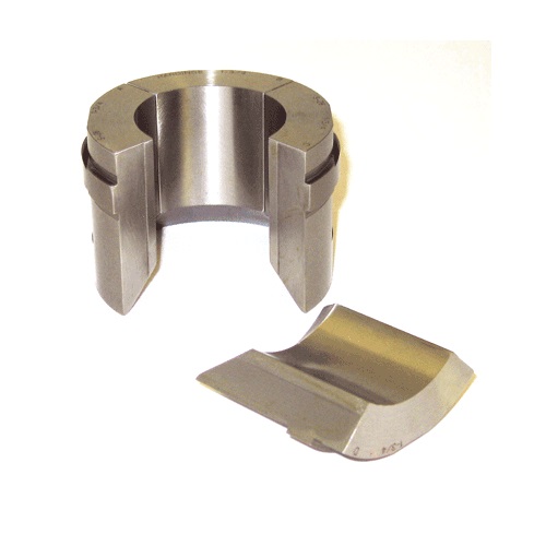 The Style "S" master collets and pads overcome all the problems associated with master collets. When loading bars, the rugged shoulder of the pad locates against the front of the groove in the master collet. There are no set screws or clamps to be damaged or loosened. When a part is machined, the working forces are against the rear shoulder of the pad which is located against the rear shoulder of the groove in the master collet. Again, there are no screws or clamps to wear or break. The clamp which holds the pads captivated in the collet literally floats longitudinally, assuring that there is never any pressure on the clamp. There are no holes in the OD of the master collet, or on the ID of the pads, resulting in maximum bearing on the workpiece and the spindle collet seat. When Style "S" collets are used, there will never be high spots on the spindle collet seat caused by the master collet and pad design. When selecting master collets from this catalog, remember the Style "S" design has been in existence for over 50 years and is the preferred system.